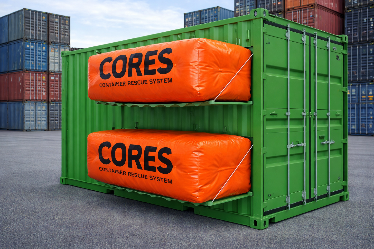 The CORES.Container is a floatable container equipped with a built-in, fully automatic satellite tracking device that activates upon contact with water.